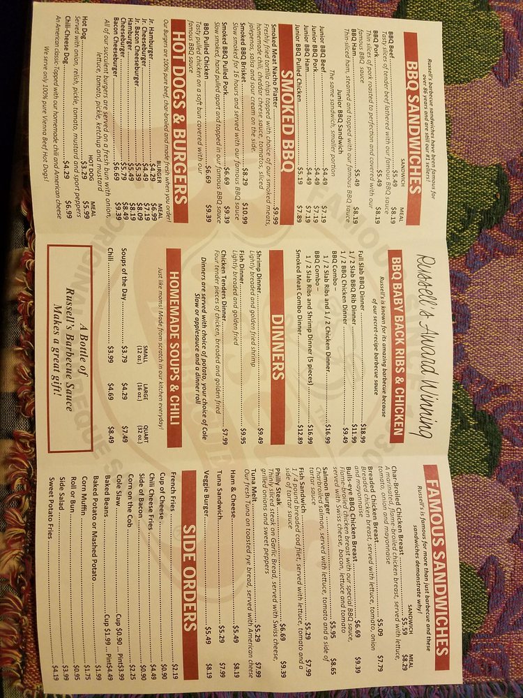 Welcome to Russell's Barbecue, a cherished dining spot located at 1621 N Thatcher Ave, Elmwood Park, IL. This establishment has mastered the art of barbecue, delivering classic flavors that transport diners back to simpler times. With a menu featuring mouthwatering BBQ beef, savory brisket, and unforgettable Chicago-style hot dogs, it’s no wonder that customers rave about their dining experiences.